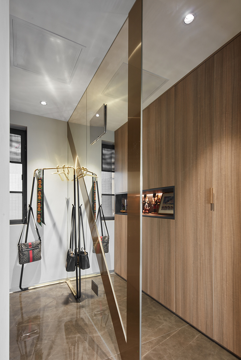 在光影中隱隱約約浮現金屬光澤,金屬條的加持更顯高級。