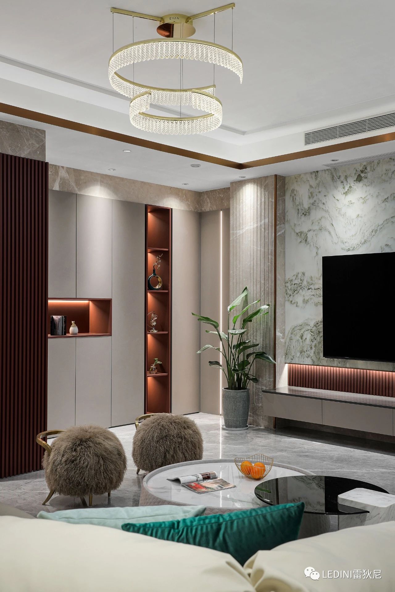 中和了空間的冷峻感,提升溫暖、奢華的氣質。